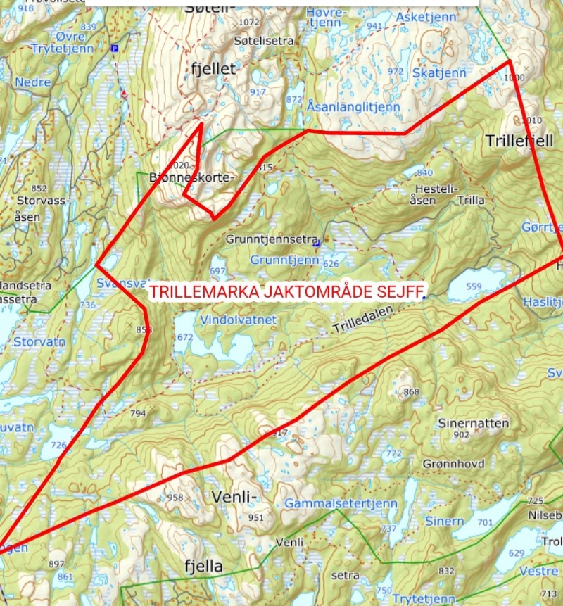 Dagskort småviltjakt i Trilledalen i Trillemarka